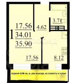 - лоджия 3.78 кв. м.