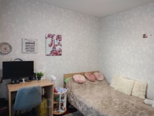 В квартире выполнен косметический ремонт, что позволяет вам сразу въехать и жить без дополнительных затрат. Планировка удобная: две комнаты изолированные, которые можно использовать как спальню и гостиную. Ещё одну спальню оборудовали в стандартной нише, которая выходит из большой комнаты. Удобно для семьи с двумя детьми: можно поставить двухэтажную кровать и площадь комнаты будет использоваться более рационально. Светлая кухня, где приятно готовить и принимать гостей. Санузел раздельный, что добавляет удобства в повседневной жизни. Окна выходят во двор, поэтому в квартире всегда тихо и спокойно.