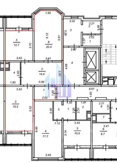 Общая площадь — 75,8 м². В квартире просторная кухня 12,6 м², комнаты 18,8 и 20,5 м².