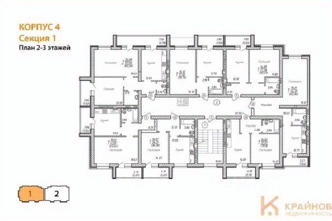 Квартира: 1 к 45,83 кв.м., 2 этаж в комплексе Александровский сад, 2 очередь, корп.4, сдача: 2кв. , этажей: 4, адрес Александровка село, Акварельная ул., , Застройщик: Еврострой.