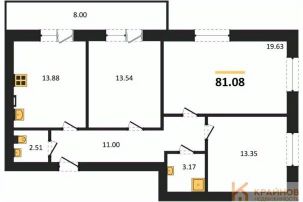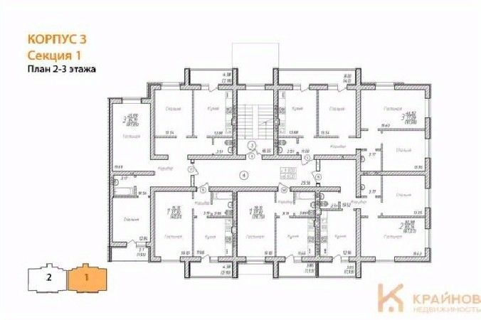 Квартира: 3 к 81,08 кв.м., 3 этаж в комплексе Александровский сад, 2 очередь, корп.3, сдача: 2кв. , этажей: 4, адрес Александровка село, Акварельная ул., , Застройщик: Еврострой.