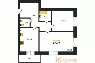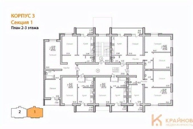 Квартира: 2 к 67,07 кв.м., 2 этаж в комплексе Александровский сад, 2 очередь, корп.3, сдача: 2кв. , этажей: 4, адрес Александровка село, Акварельная ул., , Застройщик: Еврострой.