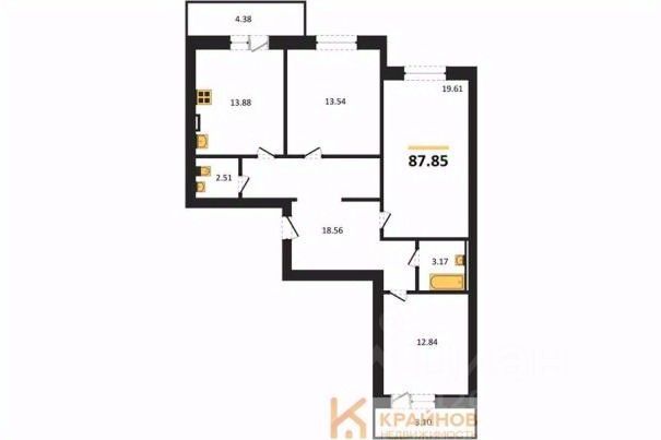 Квартира: 3 к 87,85 кв.м., 2 этаж в комплексе Александровский сад, 2 очередь, корп.3, сдача: 2кв. , этажей: 4, адрес Александровка село, Акварельная ул., , Застройщик: Еврострой.
