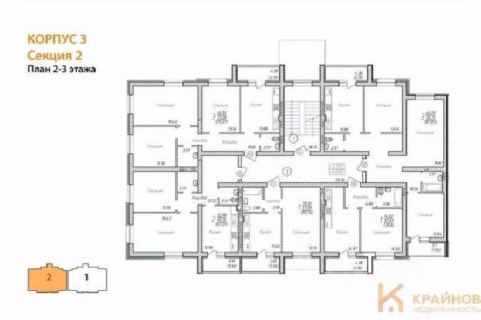 Квартира: 2 к 67,07 кв.м., 2 этаж в комплексе Александровский сад, 2 очередь, корп.3, сдача: 2кв. , этажей: 4, адрес Александровка село, Акварельная ул., , Застройщик: Еврострой.