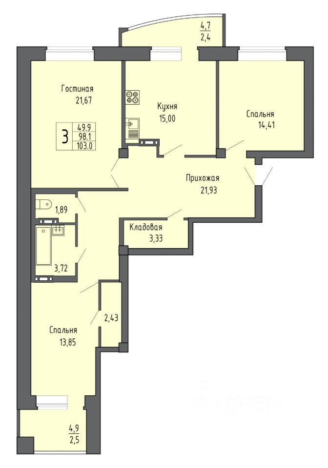 Продаётся 3-комнатная квартира в сданном доме (Лётчика Филипова, 4 (позиция 3)), срок сдачи: IV-кв. 2024, общей площадью 103 кв.м., на 9 этаже. Расположение, транспортная доступность Пятнадцать 16-этажных корпусов жилого комплекса "Спутник" занимают территорию около 16 га вблизи окружной дороги (улицы Антонова-Овсеенко, Ломоносова) и Московского проспекта (магистраль А-134 - подъездная автодорога к федеральной трассе М-4 "Дон"). Жилой квартал расположен в северной части города, рядом с лесным массивом Воронежской нагорной дубравы. Комплекс граничит с коттеджным поселком "Лесная поляна", гаражным кооперативом и фруктовым садом. На расстоянии около 4 км находится пляж на берегу Воронежского водохранилища. По Московскому проспекту можно за десять минут доехать до международного аэропорта, за двадцать минут - до железнодорожного вокзала или административного центра города. В шаговой доступности находятся остановки общественного транспорта - 35 маршрутов в центр Воронежа, до вокзала, автостанции, аэропорта, в близлежащие районы и пригороды. Инфраструктура Внутри жилого комплекса построен детский сад на 280 мест, спортивные площадки для занятий гимнастикой и игр в волейбол, баскетбол и мини-футбол. Планируется открытие общеобразовательной школы на 1224 ученика. По соседству работают супермаркет "Магнит", школа с бассейном и гимназия. Вблизи ЖК "Спутник" расположены спорткомплекс "Олимпик", теннисный клуб "Адмирал" (с катком, бассейном и теннисными кортами), областная клиническая больница 1. Недалеко находятся торговый центр "Московский проспект" (с гипермаркетом "Лента"), сити-парк "Град", рынок "Воронежский". Практически в любой район города можно доехать на автобусе или маршрутном такси, которые останавливаются в десяти минутах пешком от комплекса. Надежность застройщика Проект комплексной застройки "Спутник" у Московского проспекта реализует ООО предприятие "ИП К.И.Т.", основанное в 1991 году. Компания начинала с производства сетки "Рабица", и за два десятилетия превратилась в крупную строительную организацию. Возведение первого жилого дома было начато в 1992 году. Предприятие владеет заводом по производству газосиликатных блоков, имеет собственную архитектурную мастерскую, производственную базу и крановое хозяйство. На заводе "Техоснастка" выпускаются лифты. Для обслуживания построенных домов создана собственная управляющая компания. Архитектура Общая площадь участка, выделенного под микрорайон ЖК "Спутник", превышает 21 га. Конструктивная схема здания - рамно-связевая. Особенность типовой серии 1.120.1-1с/89 - прочный каркас здания: колонны стянуты между собой стальными тросами, которые укладывают в ригели и заливают бетоном. Наружные стены имеют толщину 61 см, выложены газосиликатными блоками и облицованы полнотелым кирпичом. Высота потолков в квартирах - 2,7 м. Квартиры предложены с черновой отделкой или с ремонтом под ключ: с обоями, линолеумом, входной металлической и межкомнатными дверями, электрической плитой и сантехникой. Развод