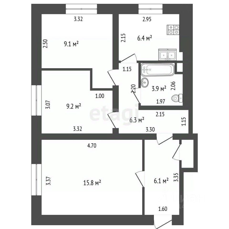 Общая площадь квартиры составляет 56,8 м², а кухня — 6,4 м². Высокие потолки! По договоренности возможно оставить мебель и бытовую технику, что сделает ваш переезд еще более удобным. Квартира не требует никаких вложений,заходи и живи.
