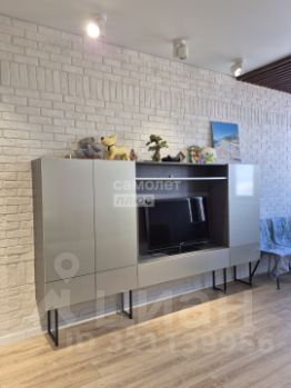 Стены: кирпич (внутренние), качественная электрика (умные выключатели),стены выровнены под стеклохолст, нанесена декоративная штукатурка. Стеклянные двери в зал, встроенные шкафы, каменные подоконники, встроенная кухня, полы с подогревом, графитная стена, выводы под кондиционер, потолок зала из дерева.