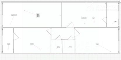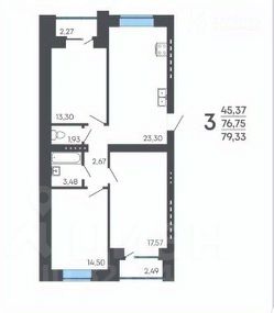 Общая 79,33 кв.м Жилая 45,37 кв.м Кухня 23,30 кв.м Ванная комната 3,48 кв.м Туалет 1,93 кв.м