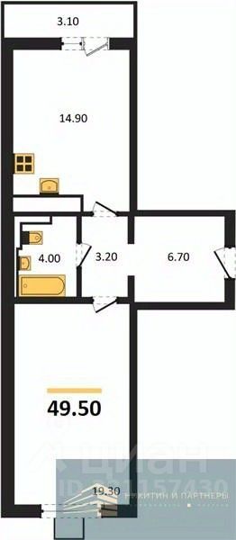 Квартира: 1 к 49,50 кв.м., 14 этаж в комплексе Яблоневые сады, 1 очередь, корп.14.1, сдача: 1кв. , этажей: 19, адрес Воронеж г., Загоровского ул., д. 5/4, Застройщик: ВЫБОР.