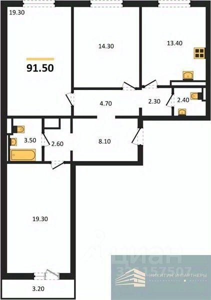 Квартира: 3 к 91,50 кв.м., 17 этаж в комплексе Яблоневые сады, 1 очередь, корп.14.4, сдача: 3кв. , этажей: 17, адрес Воронеж г., Загоровского ул., д. 5/3, Застройщик: ВЫБОР.