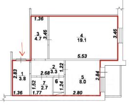 Продается однокомнатная квартира с редкой планировкой площадью 42,6 кв.м. без учета балкона на 5 этаже.