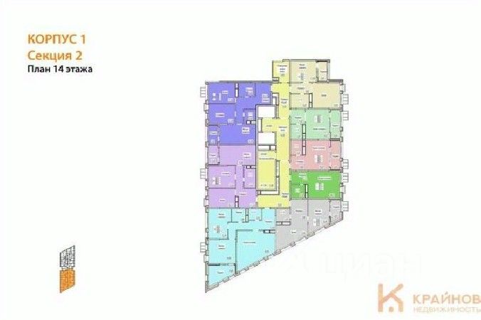 Квартира: 1 к 38,43 кв.м., 14 этаж в комплексе Z-town, 1 очередь, корп.1, сдача: 2кв. , этажей: 21, адрес Воронеж г., Чуева наб., д. 7, Застройщик: Новый код.