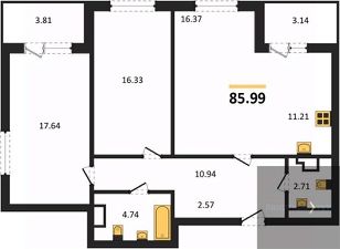 Квартира: 2 к 85,99 кв.м., 7 этаж в комплексе Городские сады, 2 очередь, корп.1, сдача: 2кв. , этажей: 18, адрес Воронеж г., Ломоносова ул., , Застройщик: ВДК.