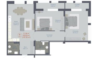 Продаётся 3-комнатная квартира в строящемся доме (Дом 1), срок сдачи: IV-кв. 2025, общей площадью 107.55 кв.м., на 20 этаже. Новый жилой комплекс "48" от группы компаний "Семья" расположен по адресу: г. Воронеж, по ул. пр-кт Труда.