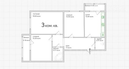 • Общая площадь 75 кв.м. Изолированные комнаты гостиная 19,6 кв.м., спальни 13,54 кв.м., 13,35 кв.м., из одной спальни выход на лоджию с панорамным остеклением. Кухня 13,84 кв.м. с выходом на лоджию с панорамным остеклением. Раздельный санузел: ванная 3,17 кв.м., туалет 2,51 кв.м. Просторный холл 11 кв.м., в котором удобно можно разместить систему хранения.