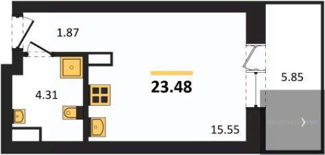 Студия: 23,48 кв.м., 10 этаж в комплексе Дом у Ротонды, 1 очередь, корп.1, сдача: 4кв. , этажей: 28, адрес Воронеж г., Транспортная ул., д. 58, Застройщик: ГК ГРАД.