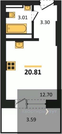 Студия: 20,81 кв.м., 2 этаж в комплексе Дом у Ротонды, 1 очередь, корп.1, сдача: 4кв. , этажей: 28, адрес Воронеж г., Транспортная ул., д. 58, Застройщик: ГК ГРАД.