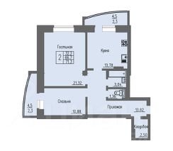 Высота потолков составляет 2,7 метра, что делает пространство более воздушным и светлым.