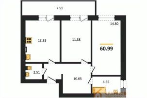 Квартира: 2 к 60,99 кв.м., 1 этаж в комплексе Александровский сад, 2 очередь, корп.2, сдача: 2кв. , этажей: 4, адрес Александровка село, Акварельная ул., , Застройщик: Еврострой.
