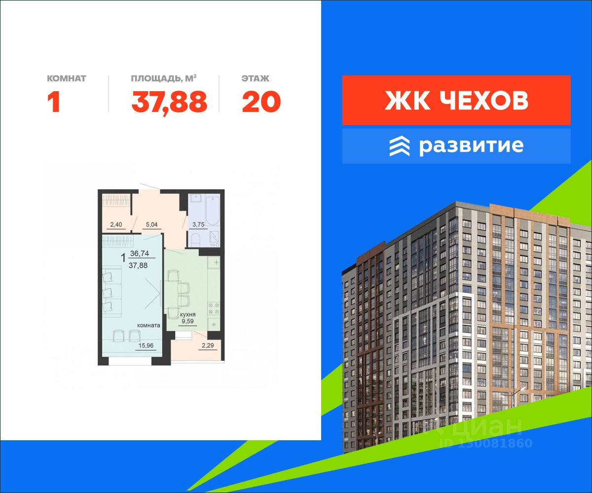 Продается квартира площадью 37.88 кв. м без отделки. Квартира находится на 20 этаже 20 этажного дома, в жилом комплексе "Чехов". Комплекс расположен по адресу - г. Воронеж, ул. Богдана Хмельницкого д. 45а.