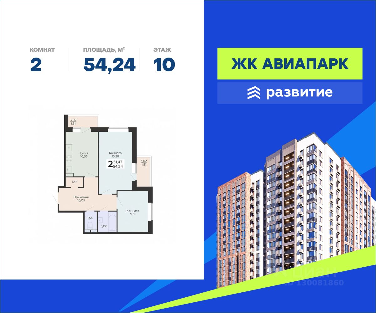 В продаже квартира площадью 54.24 кв. м с отделкой. Квартира расположена на 10 этаже 18 этажного дома, в новом жилом квартале "Авиапарк".