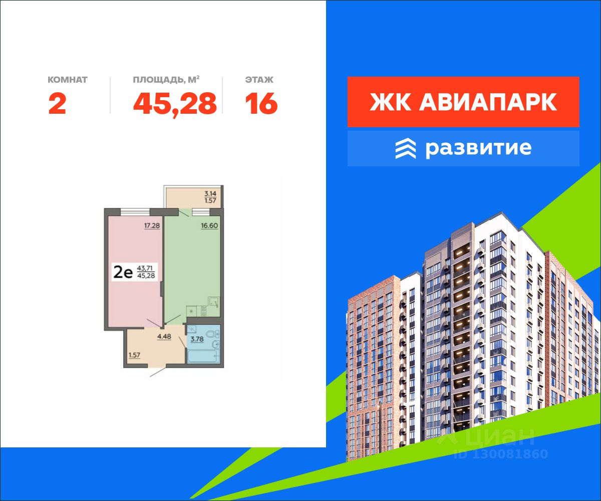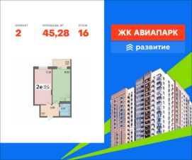 В продаже квартира площадью 45.28 кв. м с отделкой. Квартира расположена на 16 этаже 17 этажного дома, в новом жилом квартале "Авиапарк".
