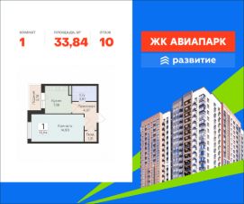 В продаже квартира площадью 33.84 кв. м с черновой отделкой. Квартира расположена на 10 этаже 18 этажного дома, в новом жилом квартале "Авиапарк".