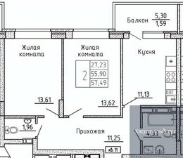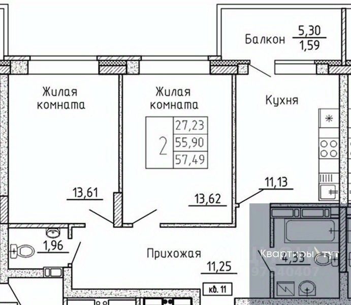 Квартира: 2 к 57,49 кв.м., 17 этаж в комплексе Титул, 1 очередь, корп.1 (Секция 3), сдача: 1кв. , этажей: 17, адрес Воронеж г., Московский пр., д. 66, Застройщик: Инвестжилстрой.