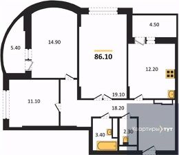Квартира: 3 к 86,10 кв.м., 24 этаж в комплексе Высота, 5 очередь, корп.5, сдача: 4кв. , этажей: 25, адрес Воронеж г., Краснознаменная ул., д. 57/5, Застройщик: Аксиома.
