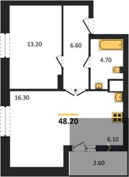 Квартира: 1 к 47,80 кв.м., 7 этаж в комплексе Урицкий, 1 очередь, корп.1, сдача: 3кв. , этажей: 25, адрес Воронеж г., Урицкого ул., д. 137, Застройщик: Аксиома.