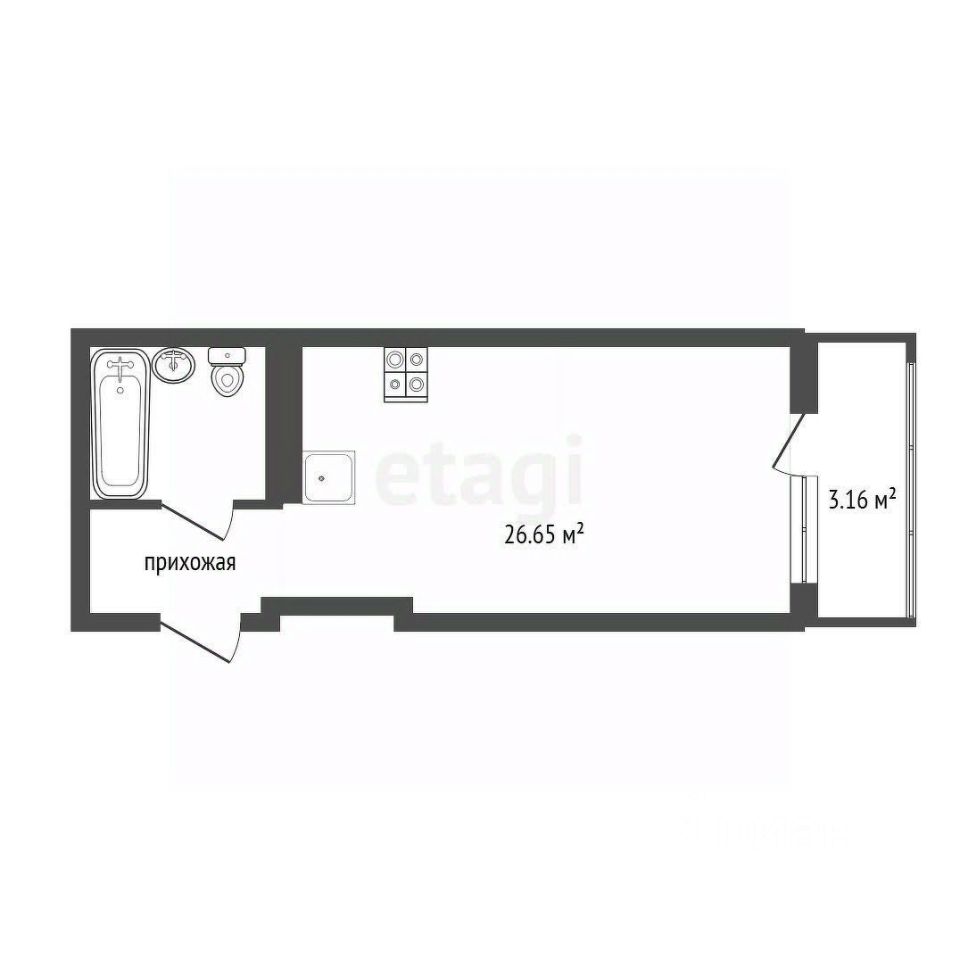 • Тип: однокомнатная квартира-студия — идеальный вариант для одного человека и пары.