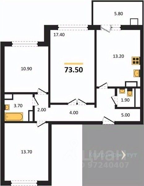 73,5 м²