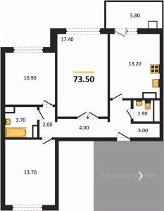Квартира: 3 к 73,50 кв.м., 9 этаж в комплексе Ласточкино, 10 очередь, корп.22, сдача: 2кв. , этажей: 17, адрес Воронеж г., Шибилкина ул., , Застройщик: ДСК.