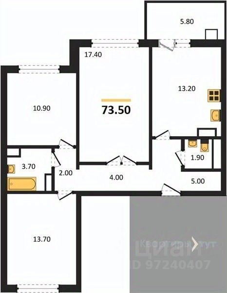 Квартира: 3 к 73,50 кв.м., 13 этаж в комплексе Ласточкино, 10 очередь, корп.22, сдача: 2кв. , этажей: 17, адрес Воронеж г., Шибилкина ул., , Застройщик: ДСК.