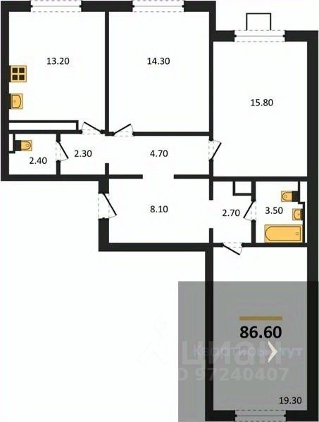 Квартира: 3 к 86,60 кв.м., 2 этаж в комплексе Яблоневые сады, 1 очередь, корп.14.2, сдача: 3кв. , этажей: 17, адрес Воронеж г., Загоровского ул., , Застройщик: ВЫБОР.