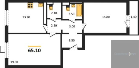 Квартира: 2 к 65,10 кв.м., 15 этаж в комплексе Яблоневые сады, 1 очередь, корп.14.2, сдача: 3кв. , этажей: 17, адрес Воронеж г., Загоровского ул., , Застройщик: ВЫБОР.