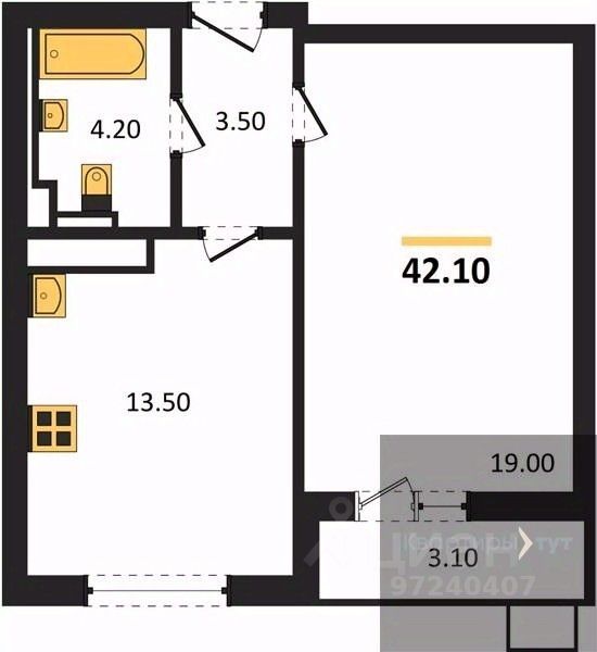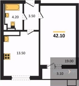 Квартира: 1 к 42,10 кв.м., 15 этаж в комплексе Яблоневые сады, 1 очередь, корп.14.2, сдача: 3кв. , этажей: 17, адрес Воронеж г., Загоровского ул., , Застройщик: ВЫБОР.