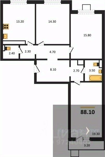 Квартира: 3 к 88,10 кв.м., 4 этаж в комплексе Яблоневые сады, 1 очередь, корп.14.2, сдача: 3кв. , этажей: 17, адрес Воронеж г., Загоровского ул., , Застройщик: ВЫБОР.