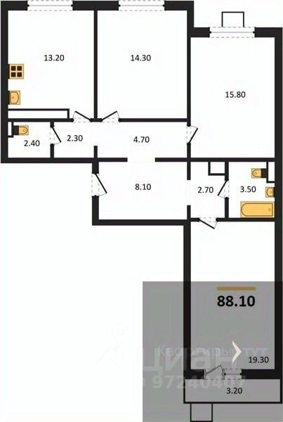 Квартира: 3 к 88,10 кв.м., 16 этаж в комплексе Яблоневые сады, 1 очередь, корп.14.2, сдача: 3кв. , этажей: 17, адрес Воронеж г., Загоровского ул., , Застройщик: ВЫБОР.