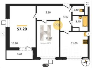 57,2 м²