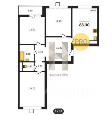 16,4 м²