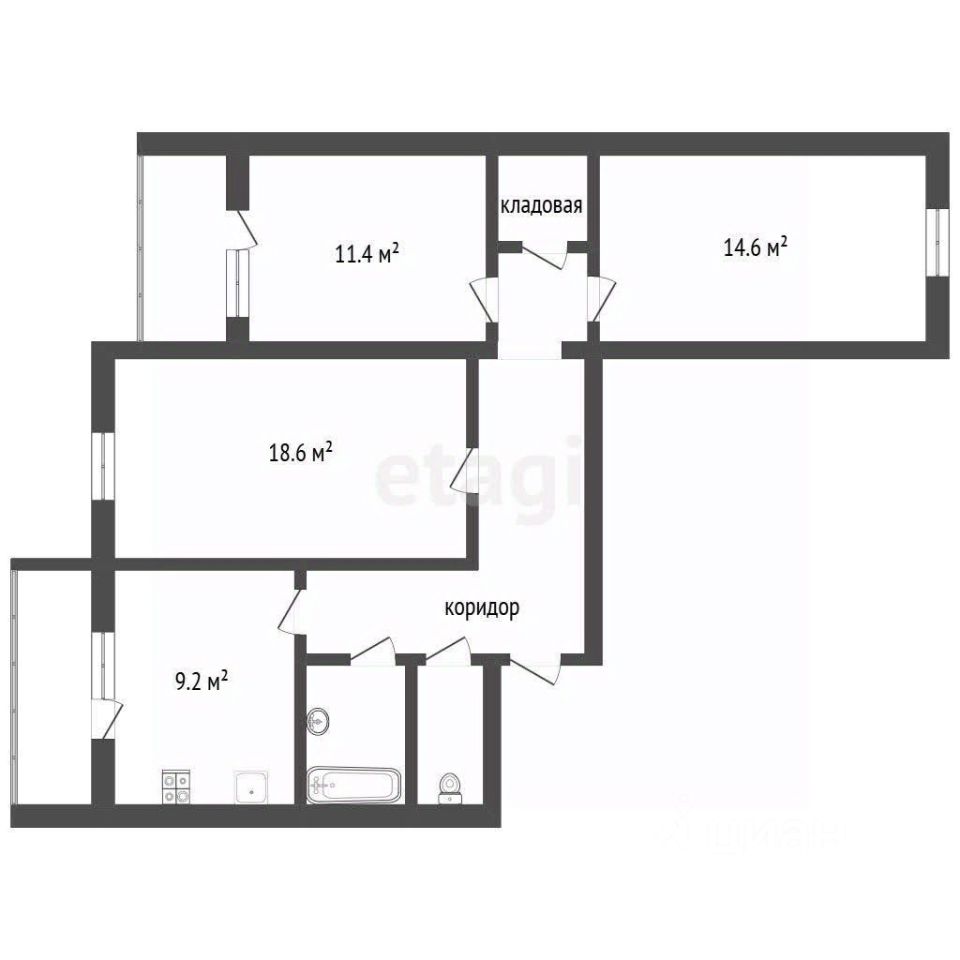 Общая площадь 74,5 кв.м. Кухня 9,2 кв.м., жилая площадь 44,6 кв.м. Санузел раздельный.