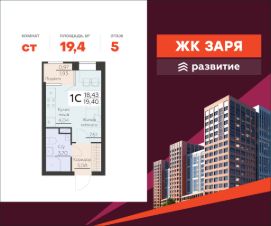 В продаже квартира площадью 19.40 кв. м с черновой отделкой. Квартира расположена на 5 этаже 14 этажного дома, в новом жилом комплексе "Заря" от федерального девелопера "Развитие".