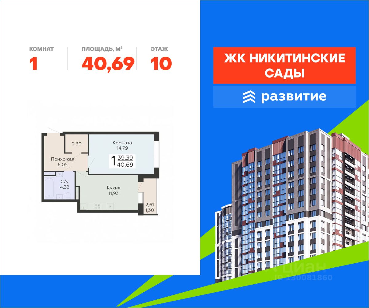 В продаже квартира площадью 40.69 кв. м с отделкой. Квартира расположена на 10 этаже 20 этажного дома, в жилом комплексе комфорт-класса "Никитинские сады".