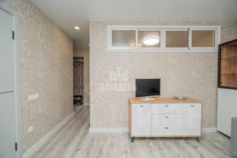 В квартире произведена перепланировка. Перепланировка узаконена. Удобная планировка: большая кухня гостиная и спальня с гардеробной.