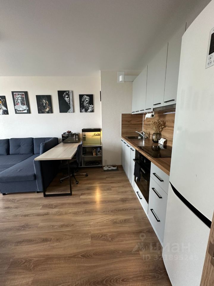 - напротив кухонный зоны установлен удобный стол на тумбе, оптимально задействующий пространство комнаты и делящий визуально комнату на 2 зоны;
