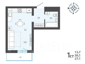Правильная форма квартиры и грамотное планирование пространства позволяет функционально использовать каждый метр студии.