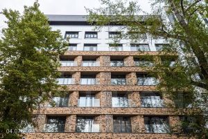 - Дом с оригинальной архитектурой и строгим характером композиционно состоит из четырех секций переменной этажности от 5 до 12 этажей.