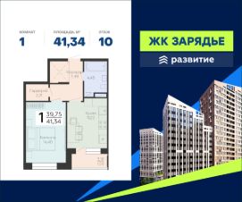 В продаже квартира площадью 41.34 кв. м с отделкой. Квартира расположена на 10 этаже 16 этажного дома, в новом микрорайоне комфорт-класса "Зарядье" (Девелопер - ГК "Развитие").