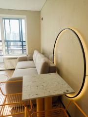 Просторная квартира с дизайнерским ремонтом расположена на берегу водохранилища, в жилом комплексе с развитой инфраструктурой. Объект полностью готов к заселению — все инженерные системы, мебель и техника новые, проживания в квартире не было. В кухонной зоне установлена встроенная техника: холодильник, духовой шкаф, микроволновая печь и индукционная панель на две конфорки. Санузел оборудован тропическим душем, смесителем с системой фильтрации и гибким шлангом, вытяжным вентилятором с отдельным выключателем. Для комфортного климат-контроля предусмотрена подготовленная розетка под кондиционер.